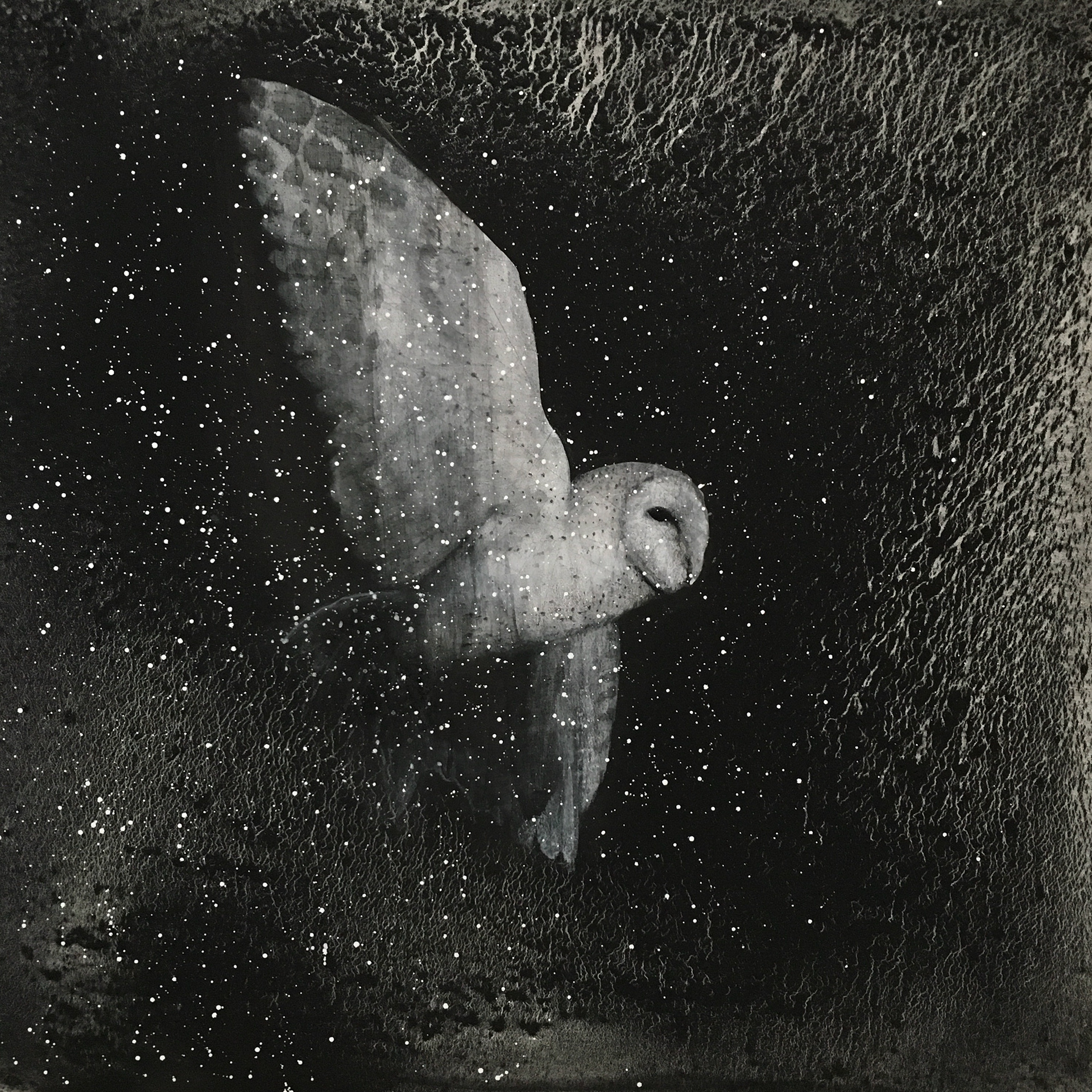 Night Flight, 36x36, Mixed Media on Canvas, 2020.