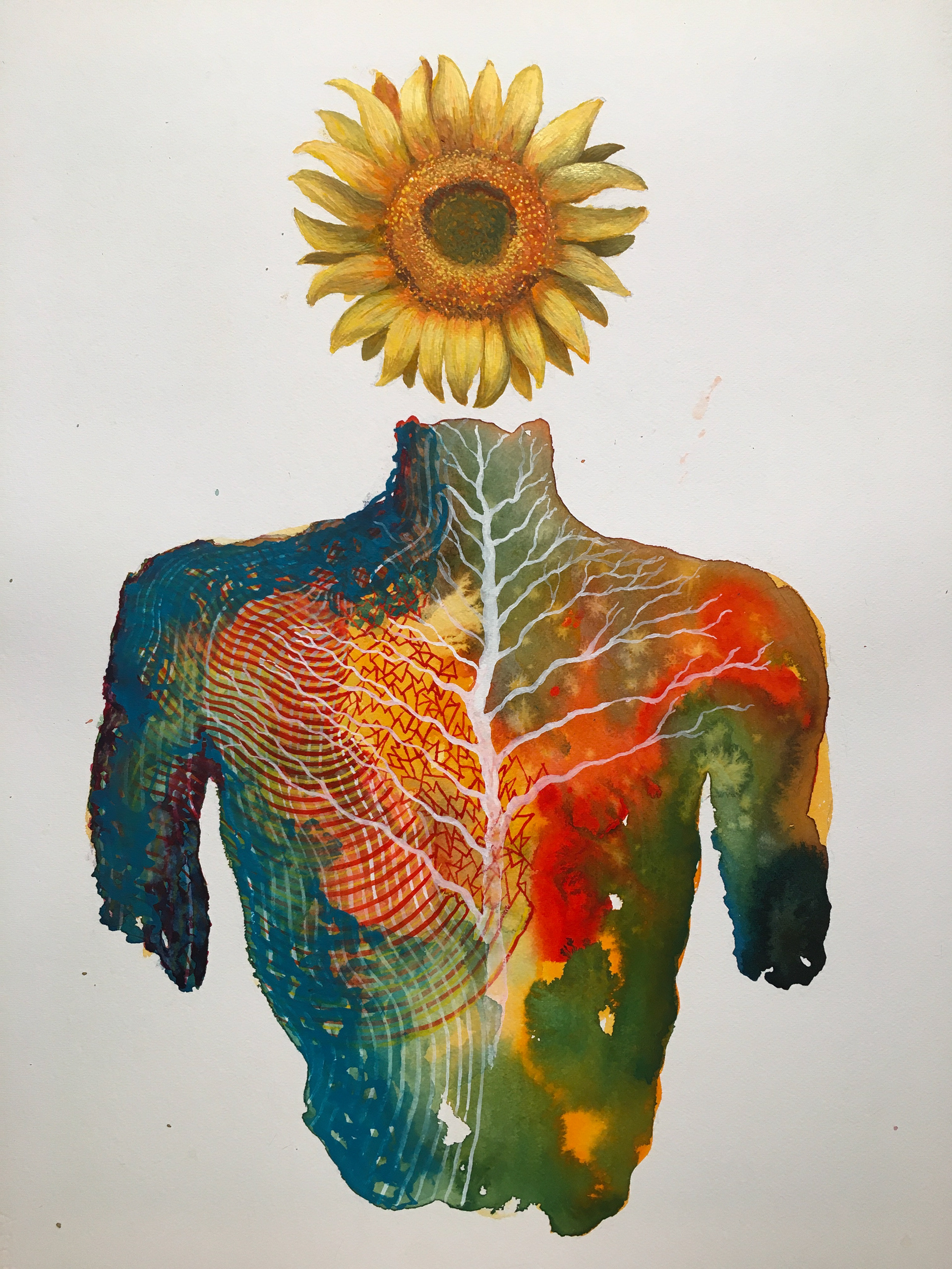 Patchwork Circuitry, 22x30, Watercolor. 2021