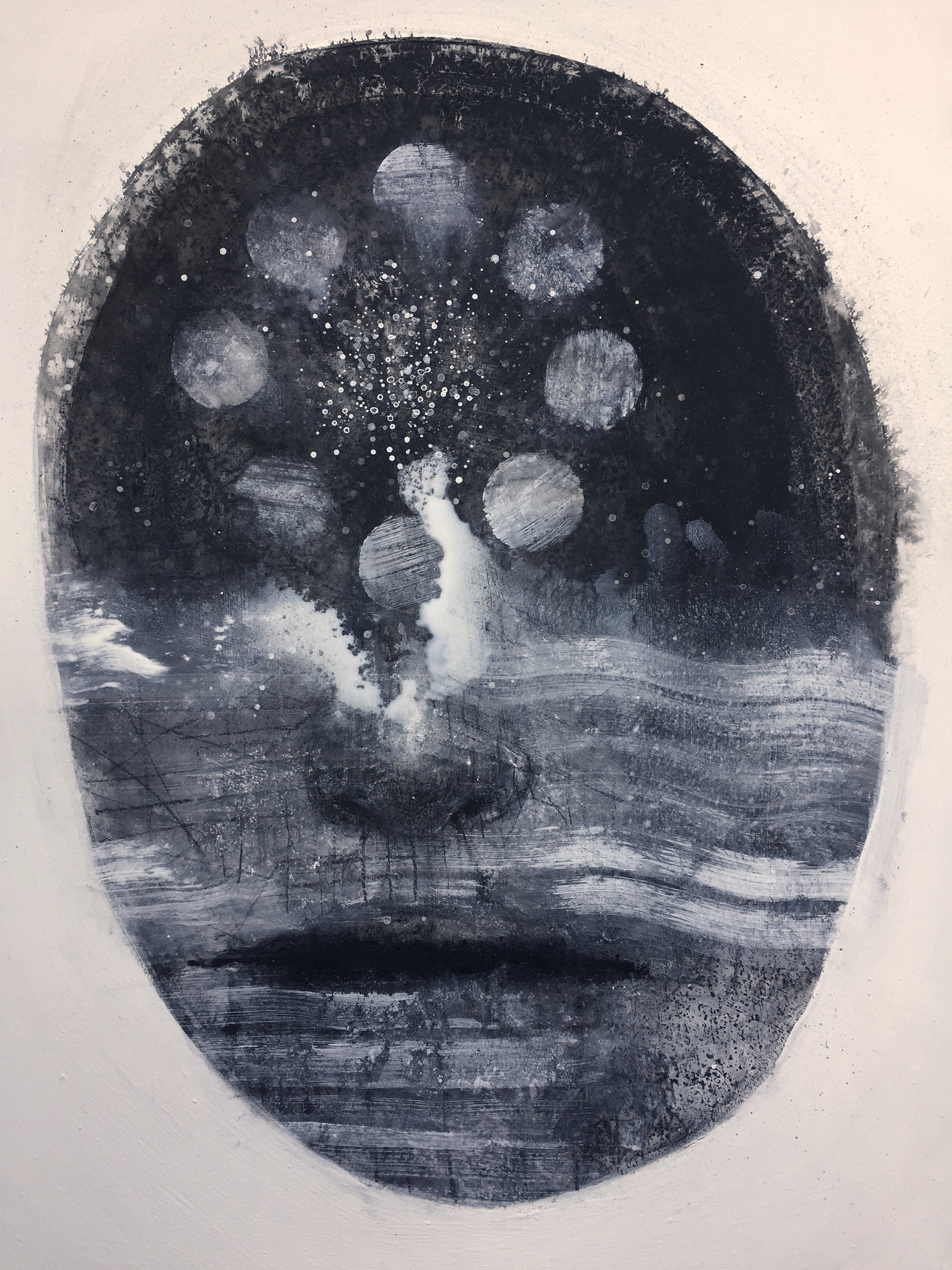 Spirit Head #9, 22x30, Mixed Media on Paper. 2017