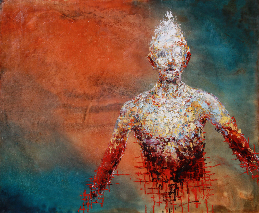 The Traveler, 36x44, Watercolor, Beeswax, Oil on Paper Mounted on Panel. 2016