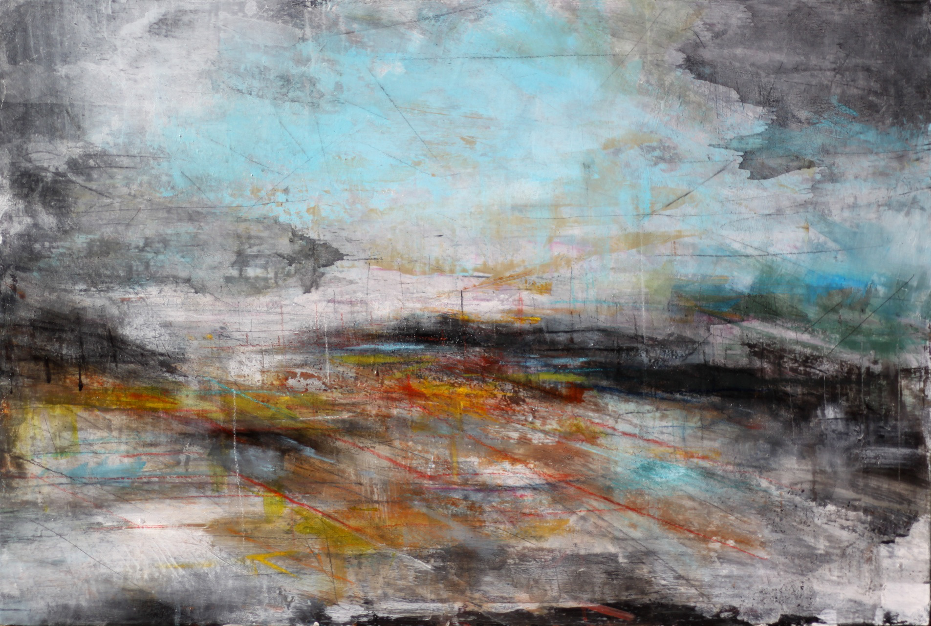 Velocity, mixed media on panel, 24x36. 2013